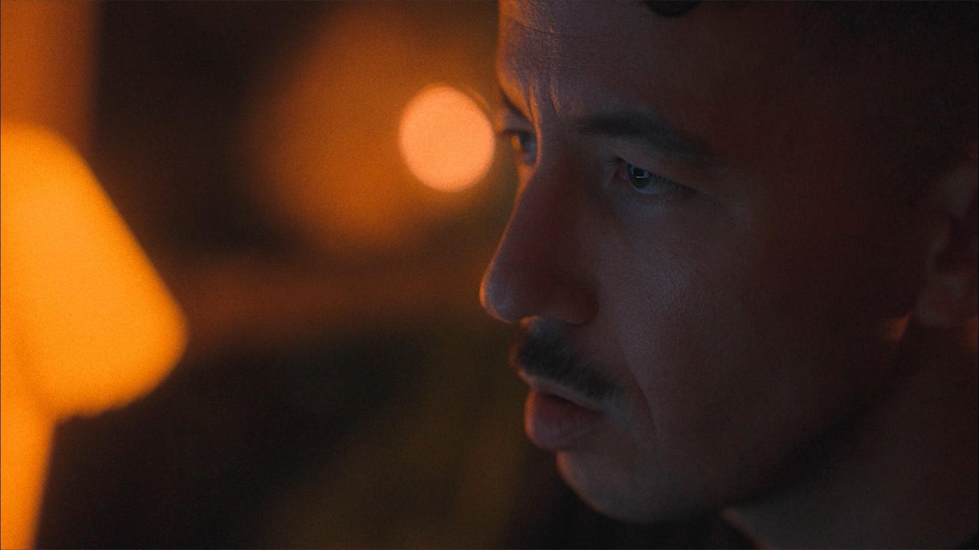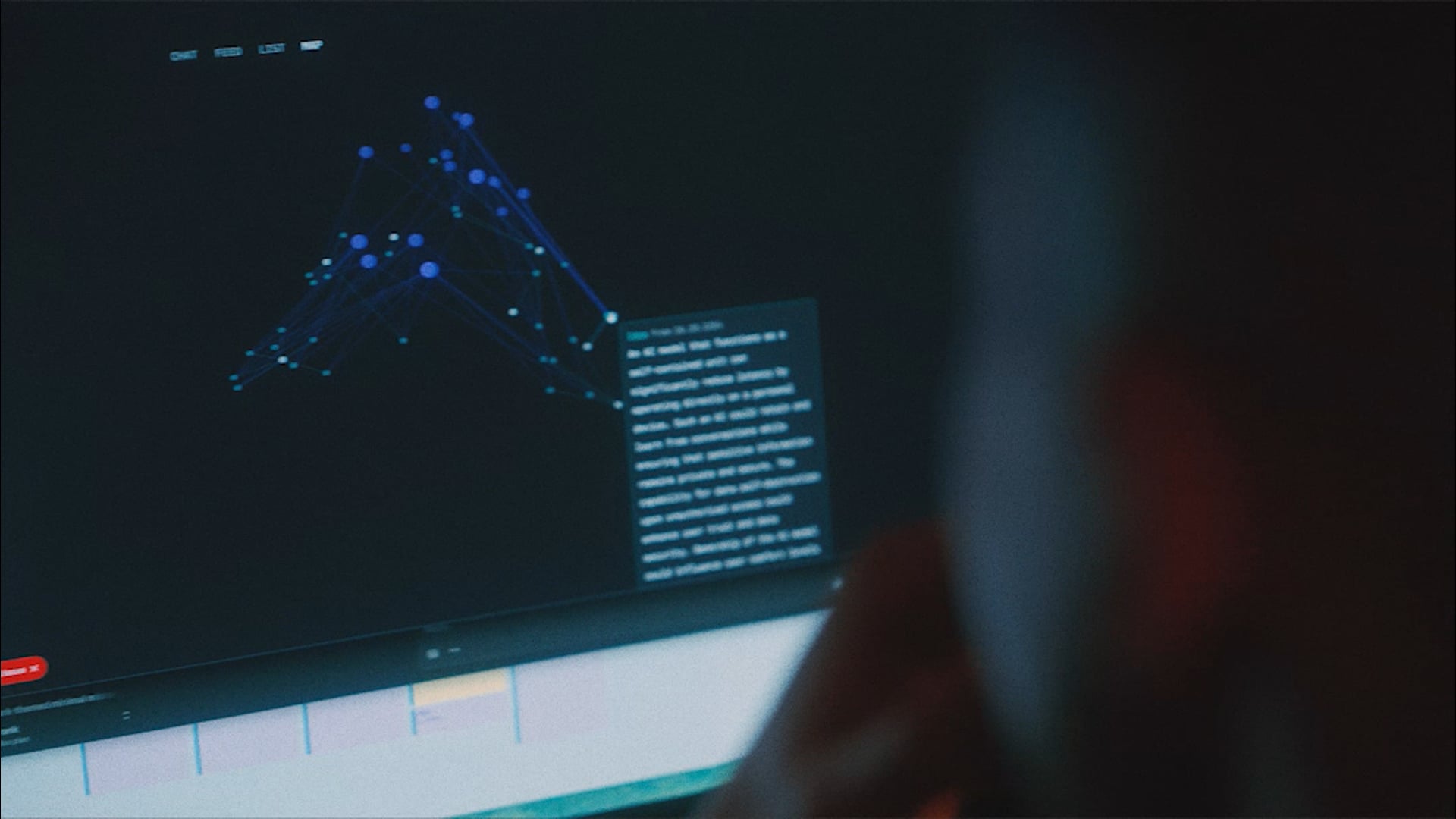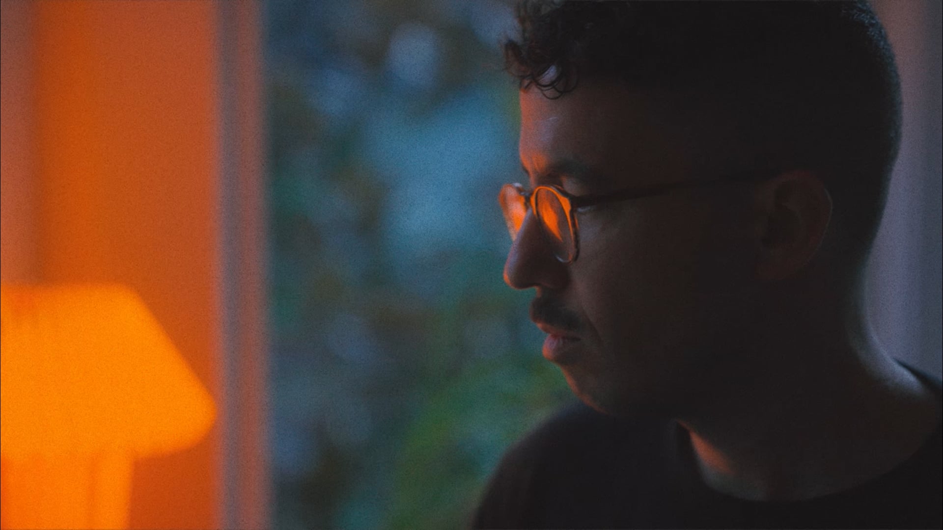 Close up of Frank at the computer at night